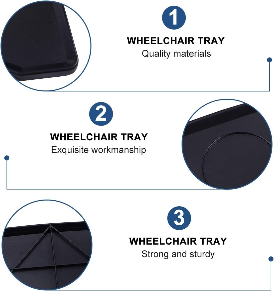 A practical and portable tray table designed to fit most wheelchairs, giving users a stable surface for dining, writing, reading, or hobbies.