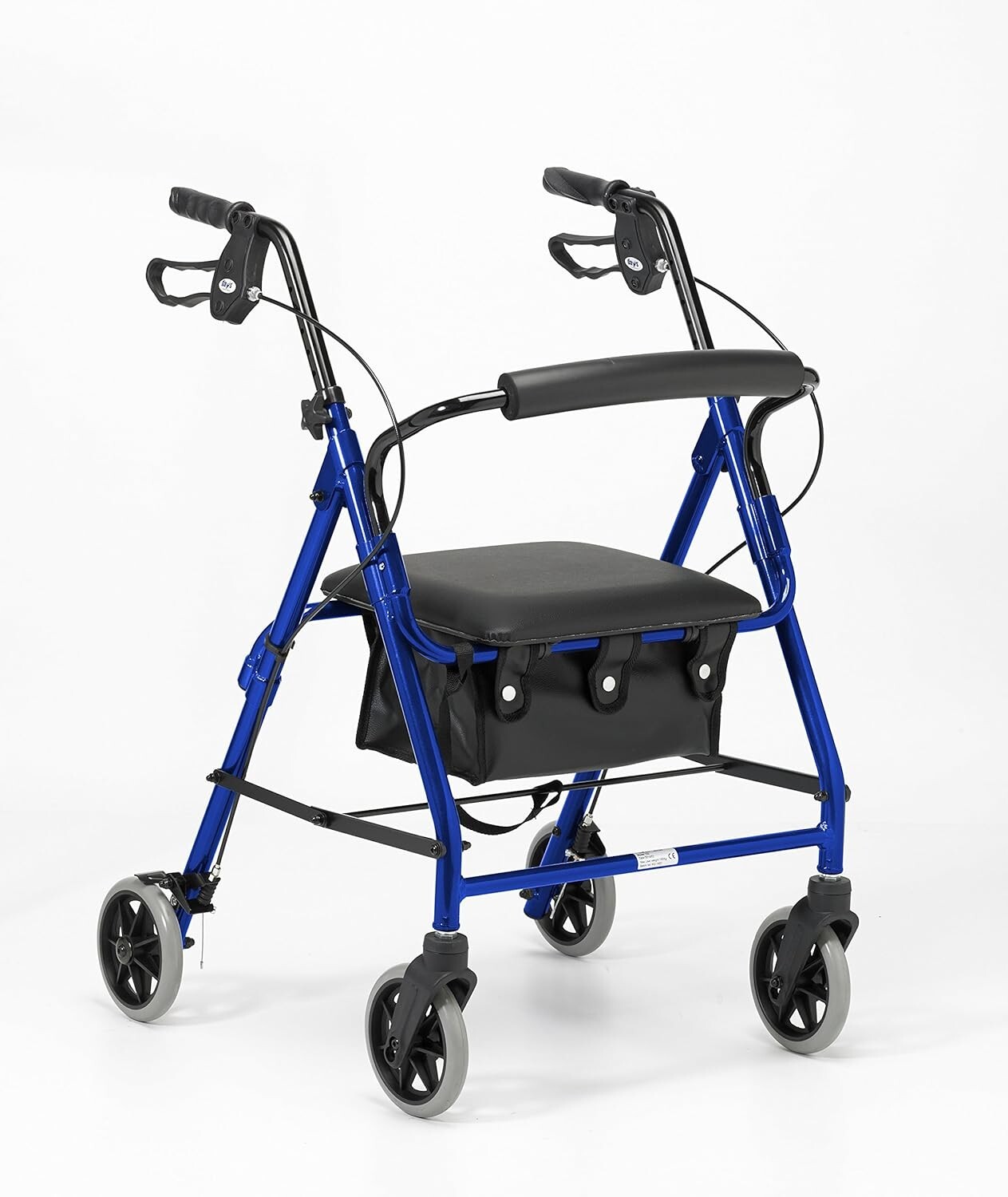 Days Lightweight Folding Rollator Walker with Seat – Blue, Medium