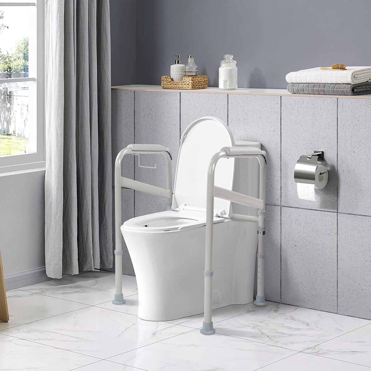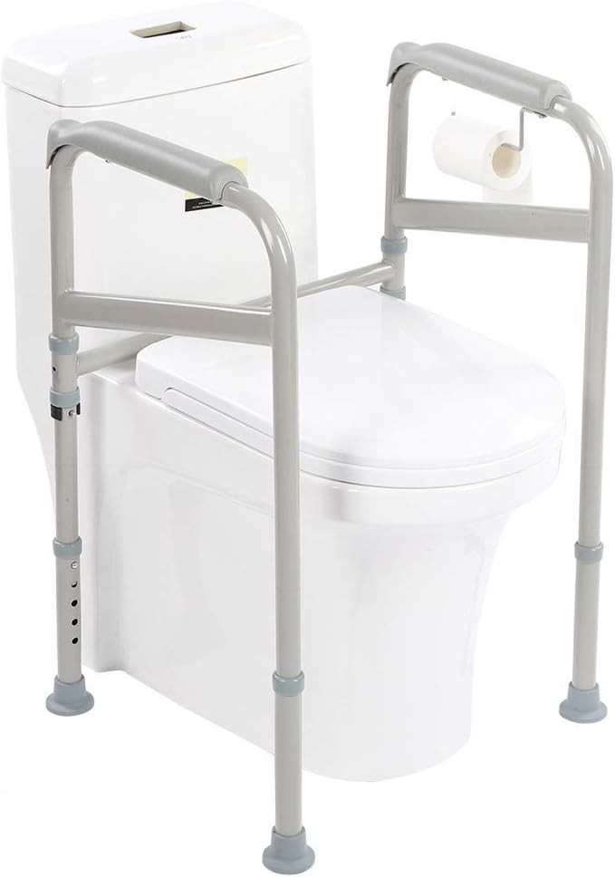 Ejoyous Adjustable Toilet Safety Frame – Carbon Steel Grab Bar with Non-Slip Feet
