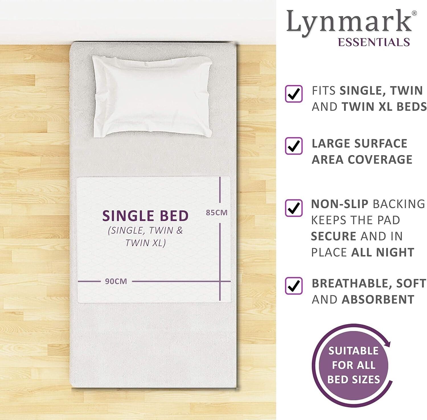 Twin Pack Lynmark Washable Incontinence Bed Pad – Waterproof Non-Slip Mat, Single 90x85cm