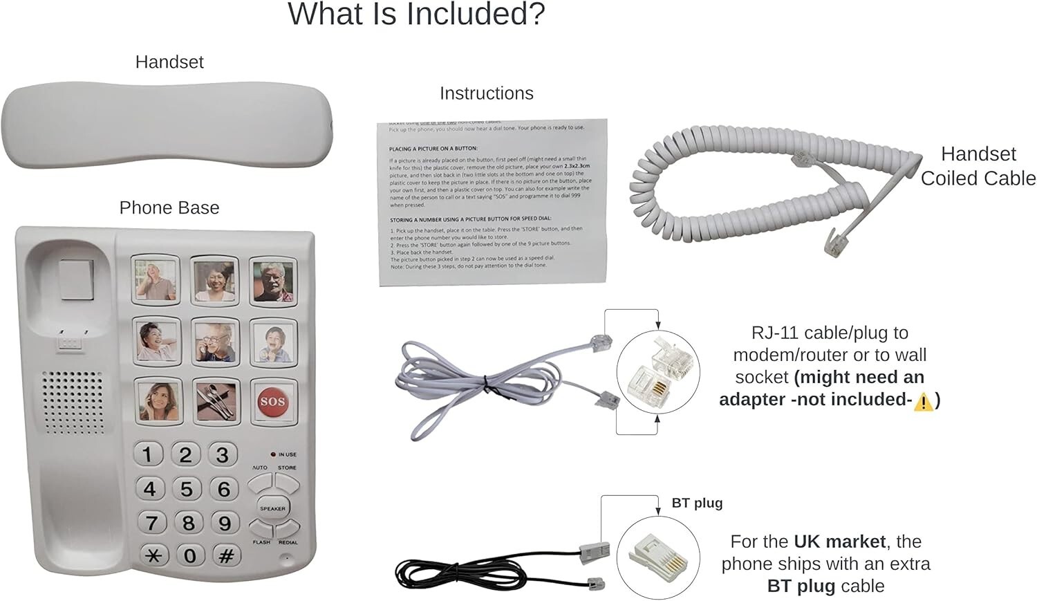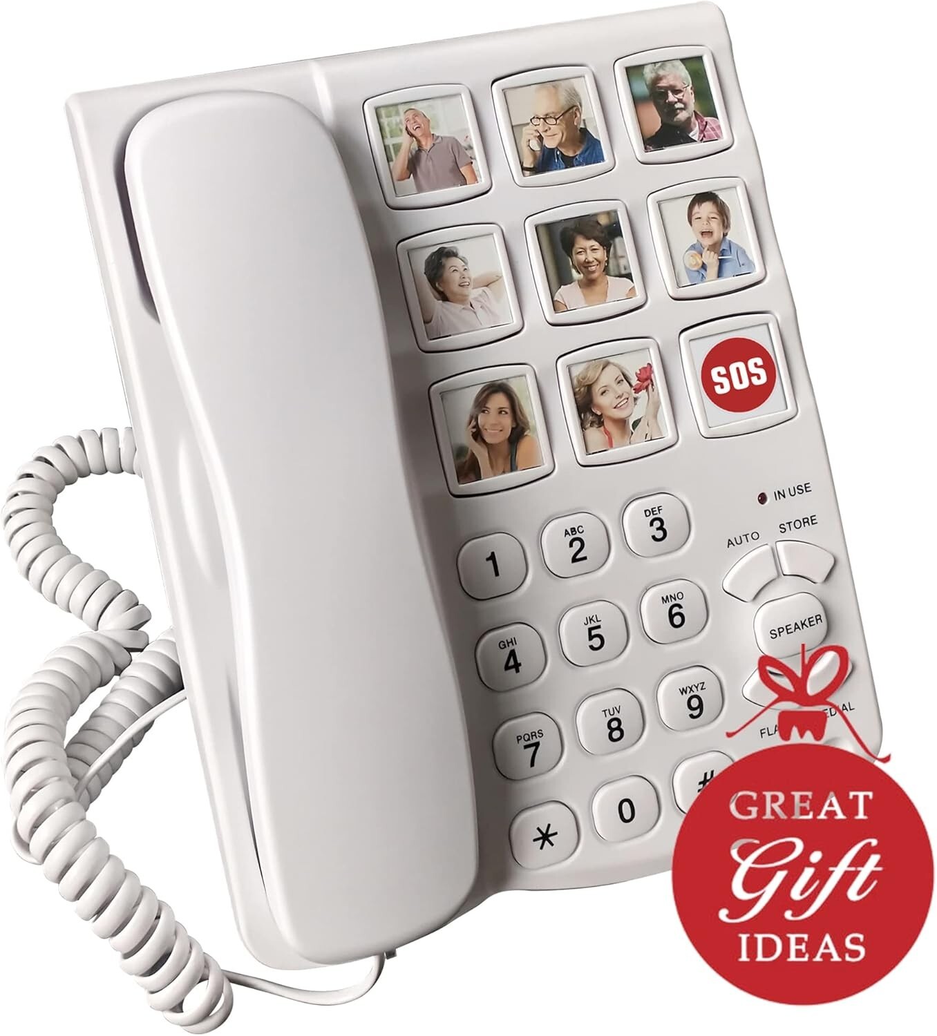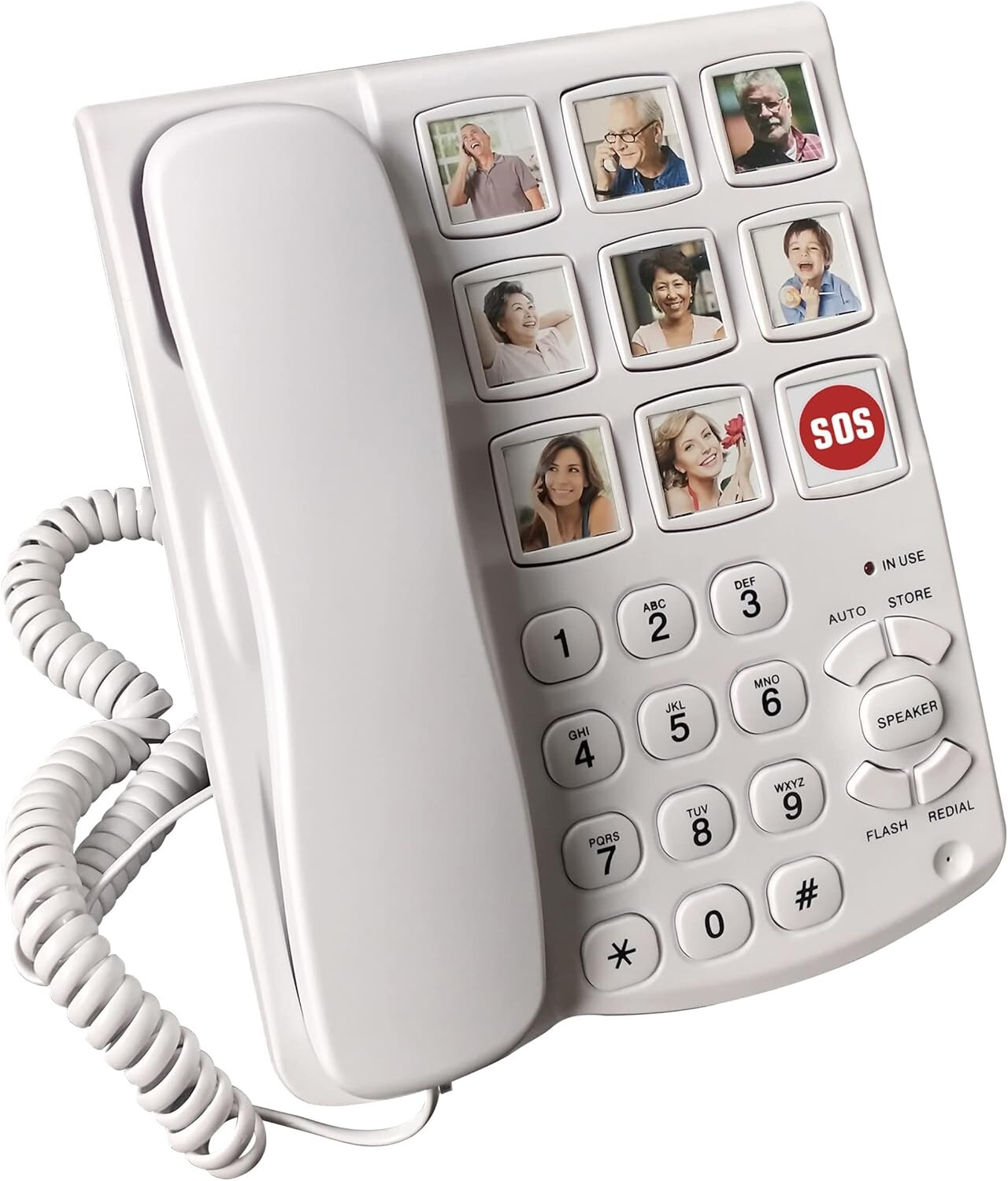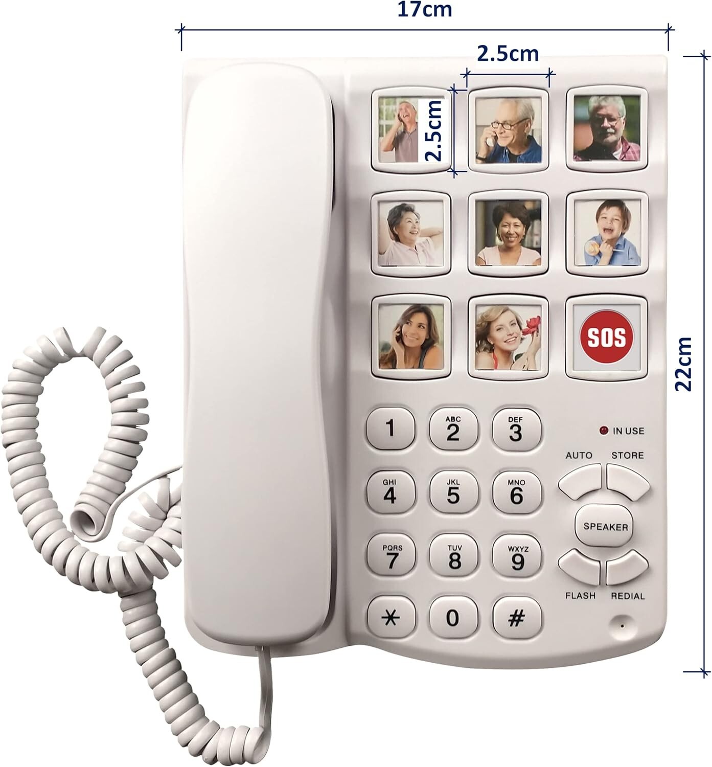 A simple, reliable landline phone with photo memory buttons – ideal for elderly users, those with dementia, or anyone needing easy, one-touch dialling with loud, clear sound.