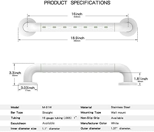 Modunful 48cm Bathroom Grab Rail – Anti-Slip Shower Handle, 150kg Weight Limit