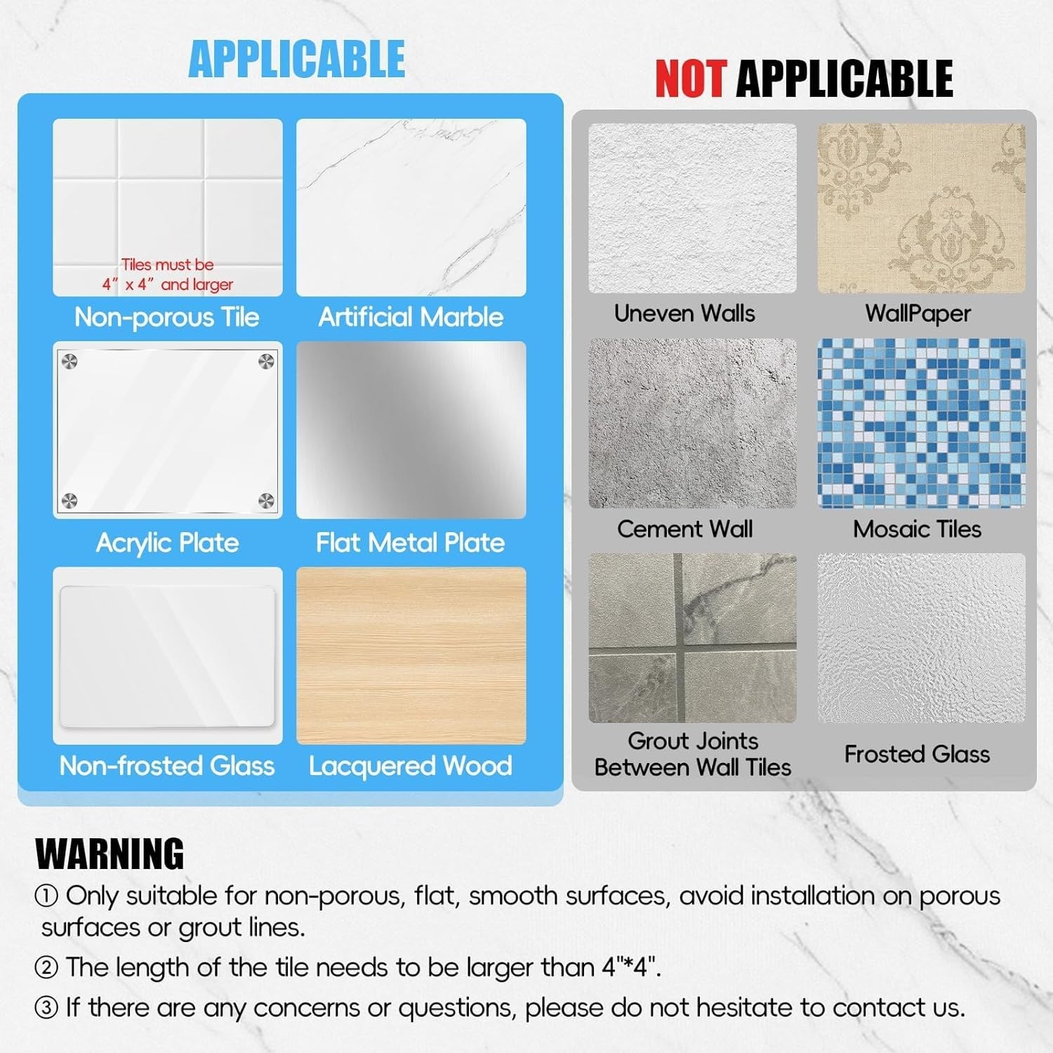 Important note: Only works on airtight, smooth, non-porous surfaces (tiles, glass, polished metal, marble). Not suitable for grout lines or textured finishes.