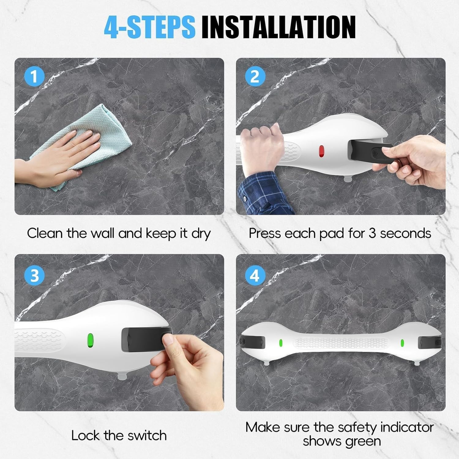 SPECILITE 44cm Bathroom Suction Grab Rail – Safety Shower Handle with Indicator