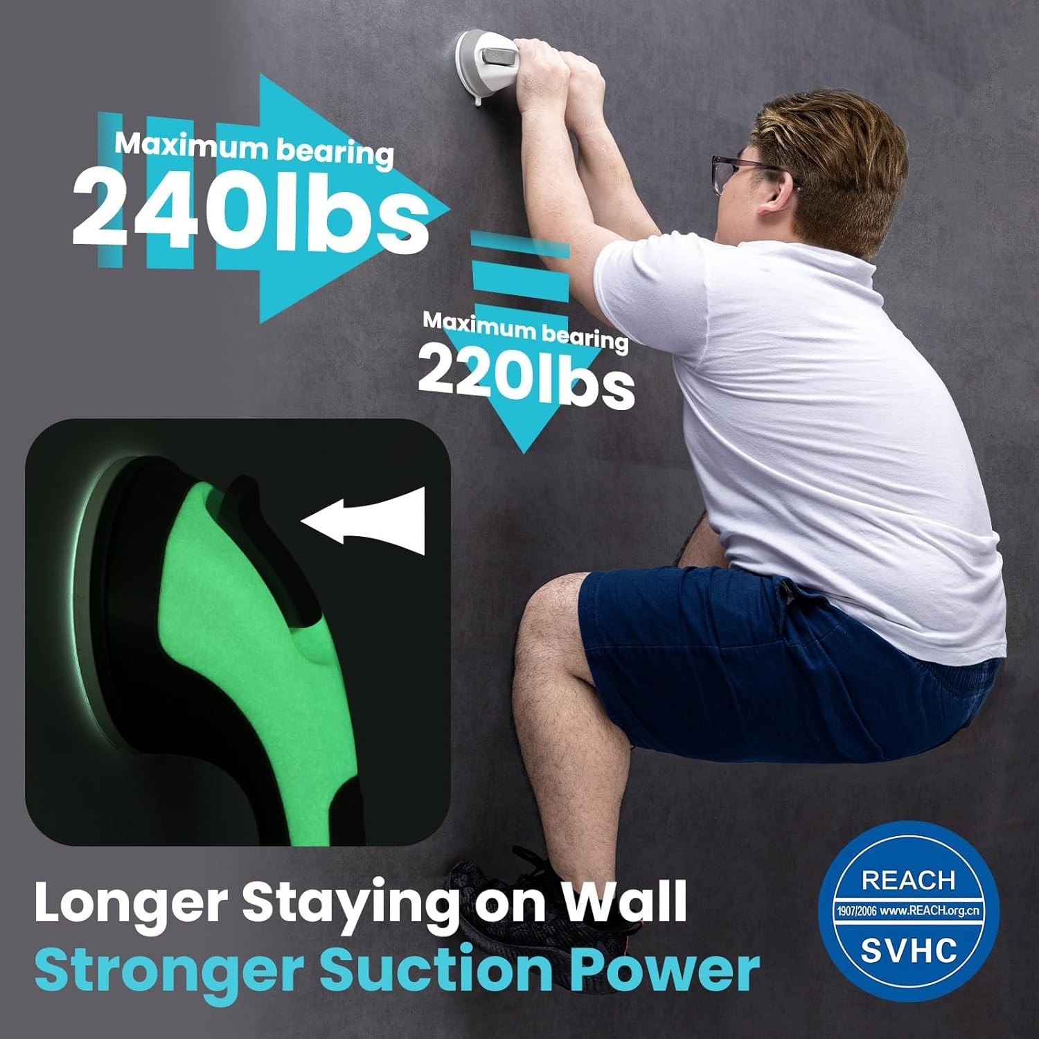 Add safety, style, and visibility with these TAILI glow-in-the-dark suction grab rails, ideal for bathrooms, showers, and toilets. Designed for elderly or mobility-impaired users, they provide firm support during transfers — and even glow at night for extra reassurance.