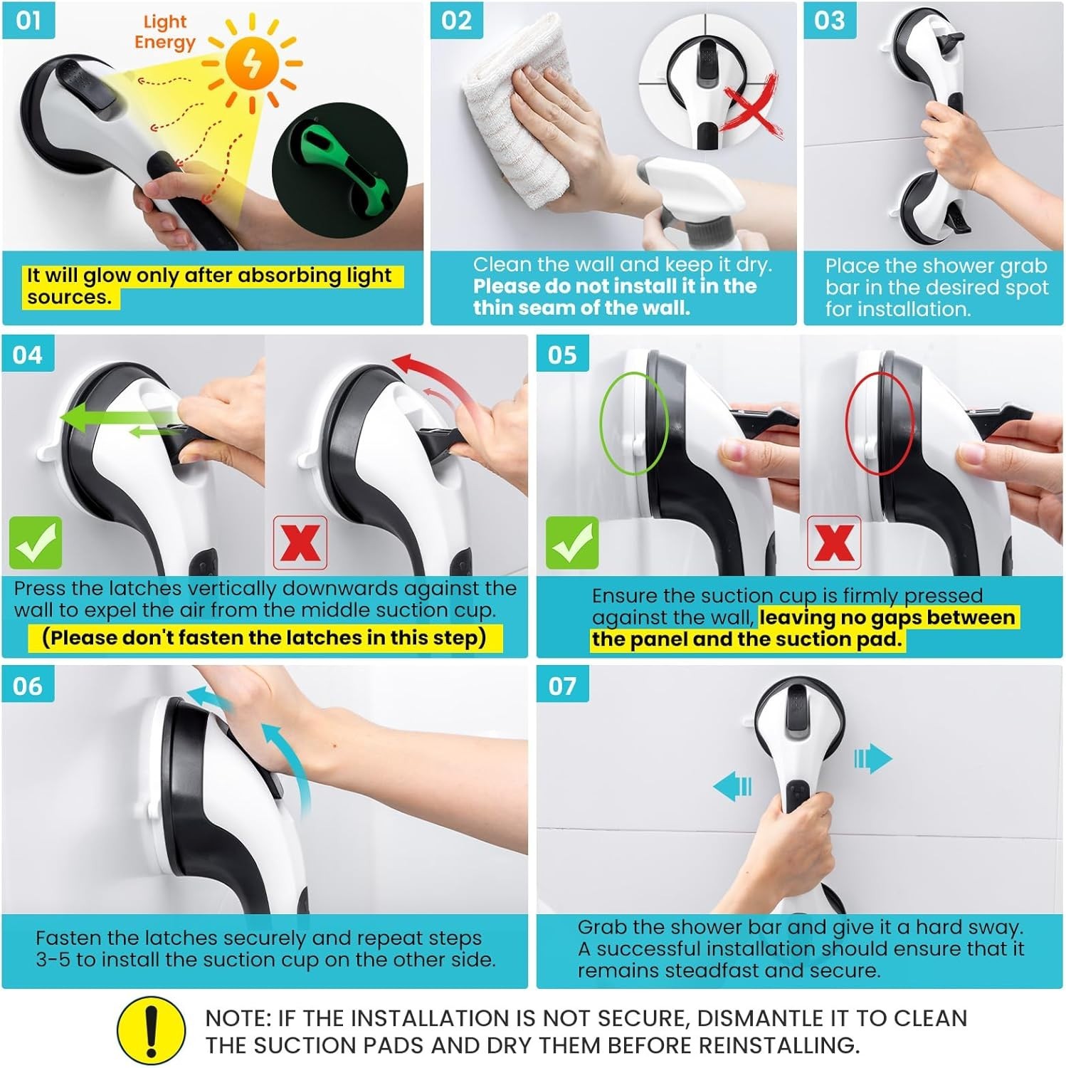 TAILI Glow in Dark Grab Rails 2 Pack – 31cm Suction Bathroom Safety Handles