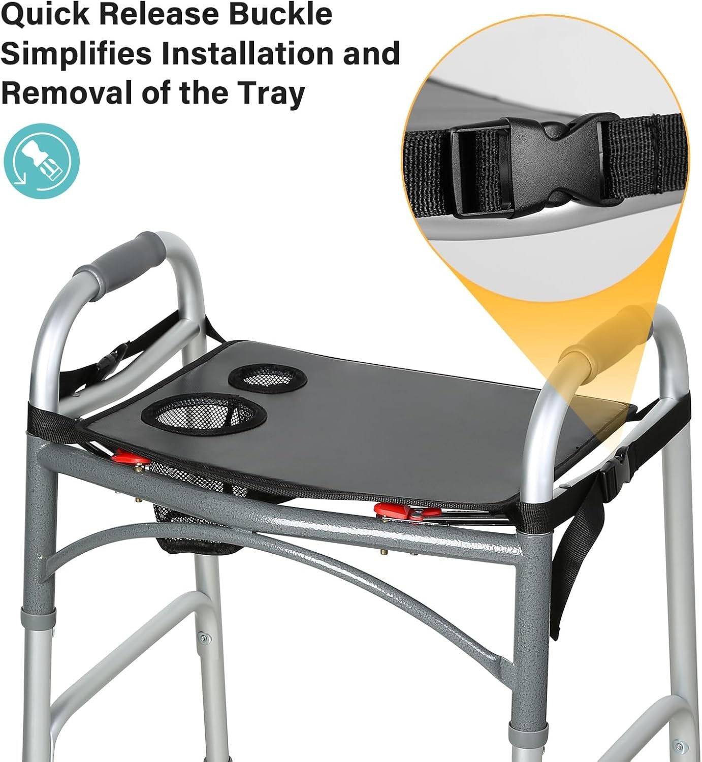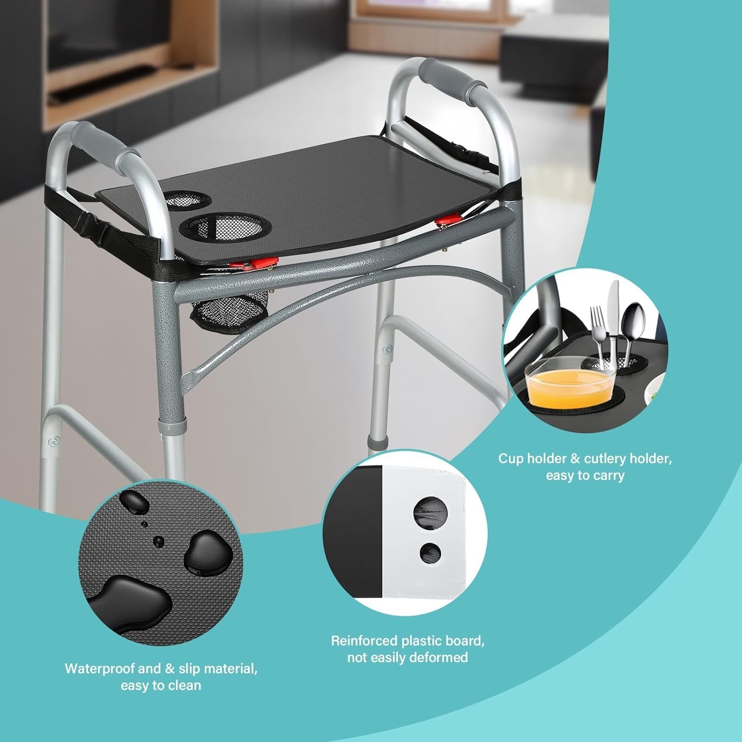 Walker Tray with Cup Holders – Detachable Universal Fit Accessory for Walker