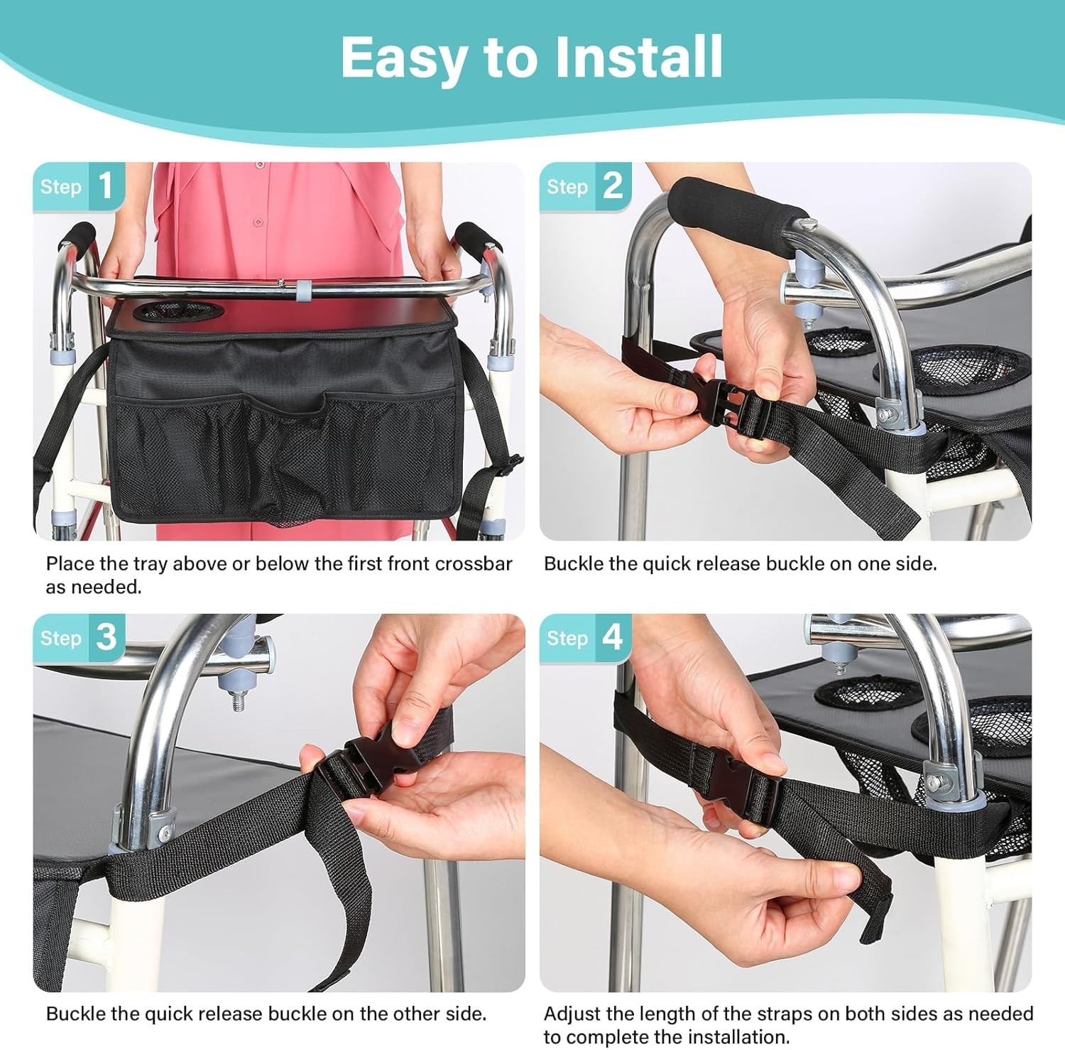 Fits most standard walkers – tray size: 41cm x 30cm (16.1″ x 11.8″)